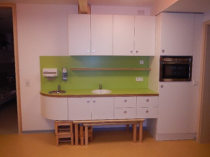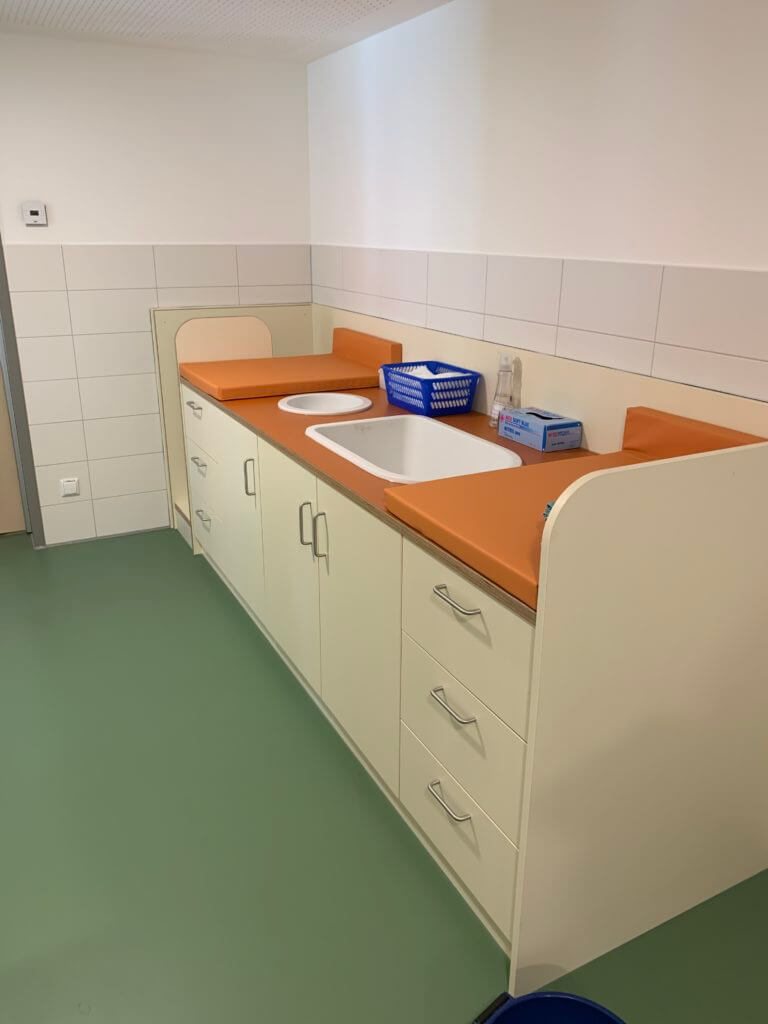 Die Planung der Sanitäranlagen für Kinder, Kleinkinder und Personal wurde vorgenommen. Weiterhin wurde die komplette Abwasser- und Trinkwasserinstallation inkl. Grundleitungen durchgeführt. Ebenso ist die zentrale Warmwasser-Bereitung im Durchflussprinzip realisiert wurden.